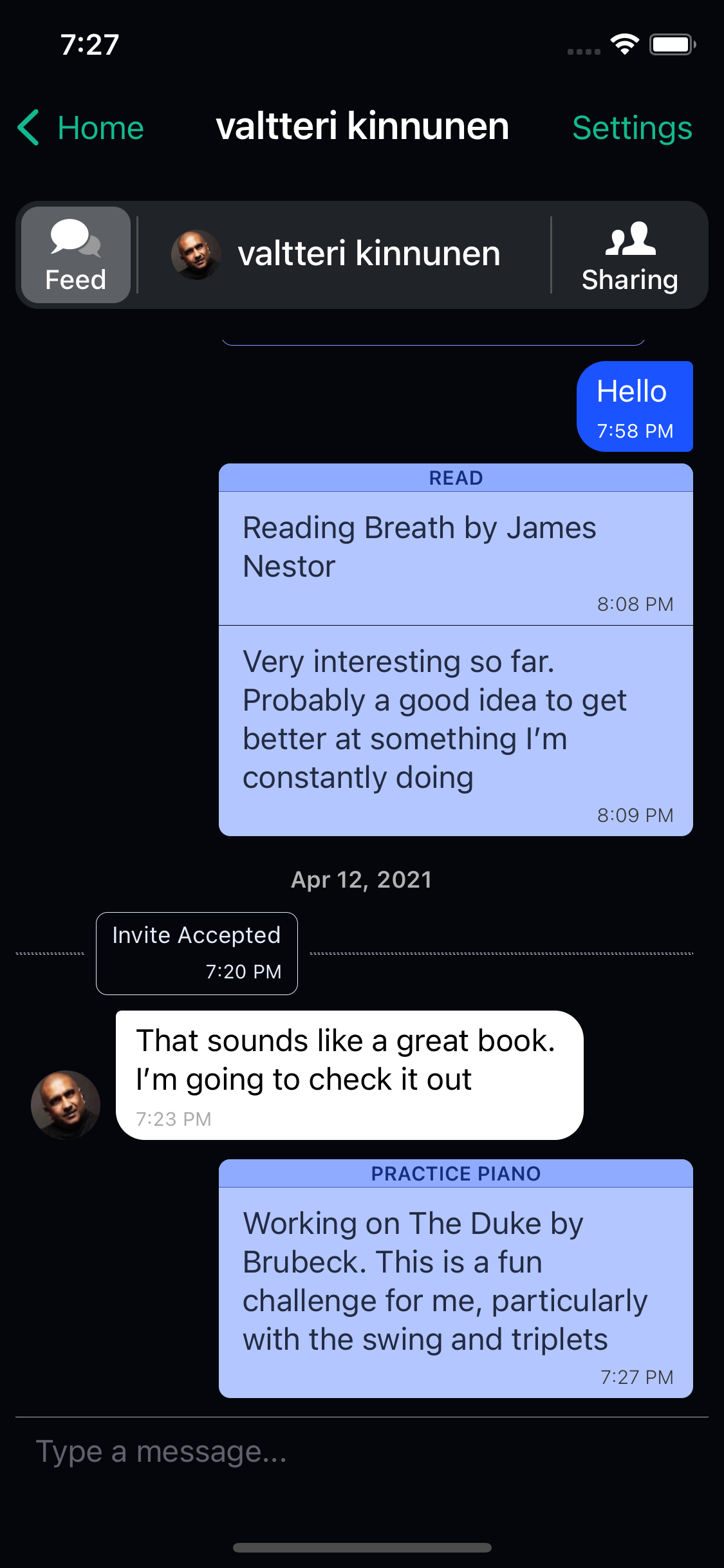 Sharing will help you follow-through. You can provide accountability and support for each other, and connect over something real and important.